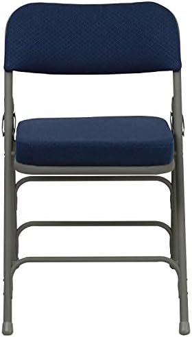 Always be ready for your next event or meeting with the Flash Furniture Hercules Series Premium Folding Chairs. Whether you’re hosting a game night, catering event, get-together, business meeting, school function, or other social or professional event, this set of 2 folding chairs offers a reliable, on-demand seating solution for commercial or home use. The 2.5″ thick foam padded seat with extra cushioning provides superior comfort for your guests during long events and will keep your clients paying more attention to you than the clock. Made for portability and ease of use, the folding event chairs have an ultra-lightweight design and feature protective non-marring floor glides that won’t mark up or damage hard flooring surfaces while being moved around the venue. The durable 18-gauge steel frame with a gray powder coat finish withstands years of quality use and is suitable for outdoor use, however, the chairs should be stored indoors after use to protect the frame from extreme moisture. Additionally, the double hinges on each side of the chair along with the leg strengthening support bars maximize stability and durability. Each guest chair measures 18.5″ W x 19″ D x 29″ H open and 18.5″ W x 4″ D x 37.5″ H folded with no assembly required so you can start setting up for events right away, and they support up to 300 pounds of static weight.